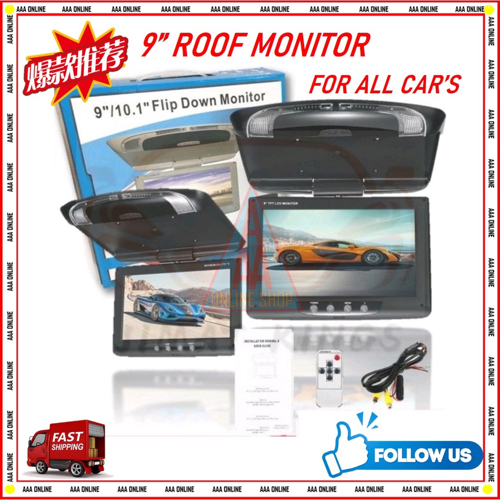 9" Car Roof Monitor Super Slim Full HD Flip down Monitor Car Roof Bumbung Kereta Roof Monitor Alza Car Roof MP5 Player