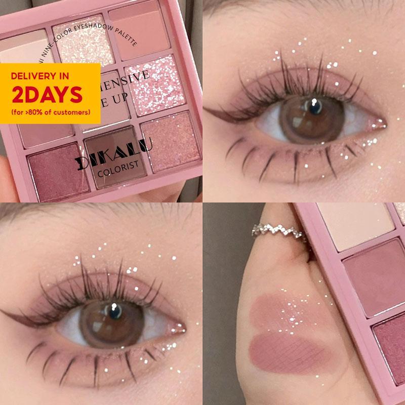 DIKALU 9 Color Palette Pink Matte Shimmer Rose Eye Shadow Long-Lasting Waterproof Festivals Valentine's Party