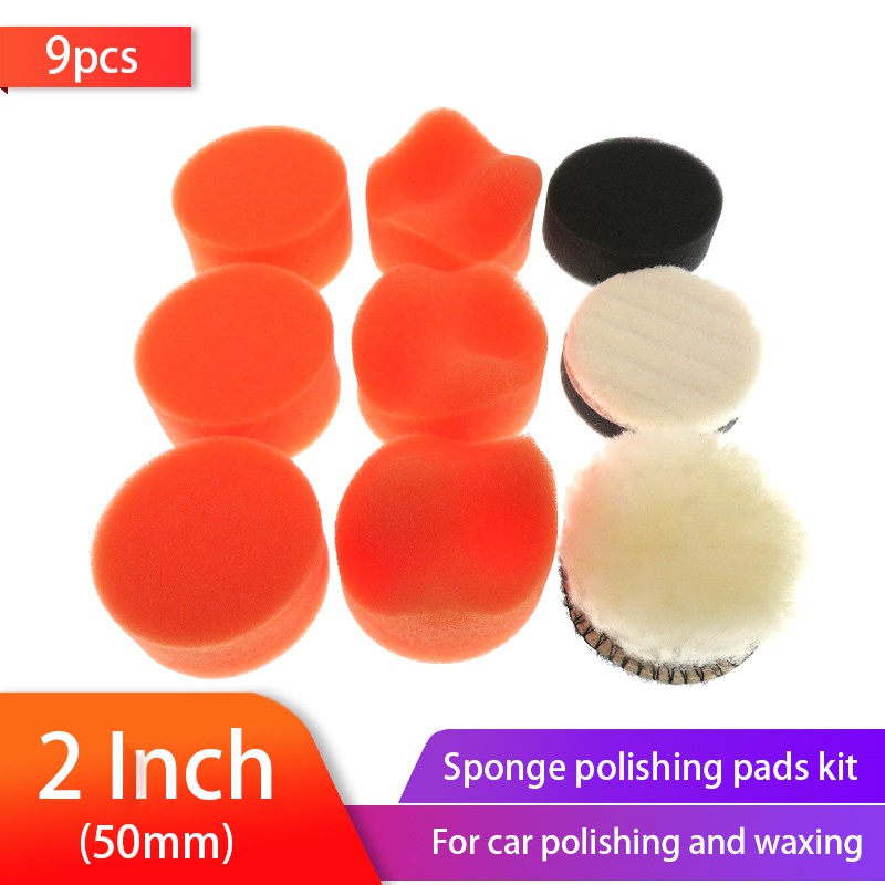 9 Pcs 2 Inch 50mm Buffing Pad Set Sponge Polishing Pad Kit For Car Polisher Abrasive Tools