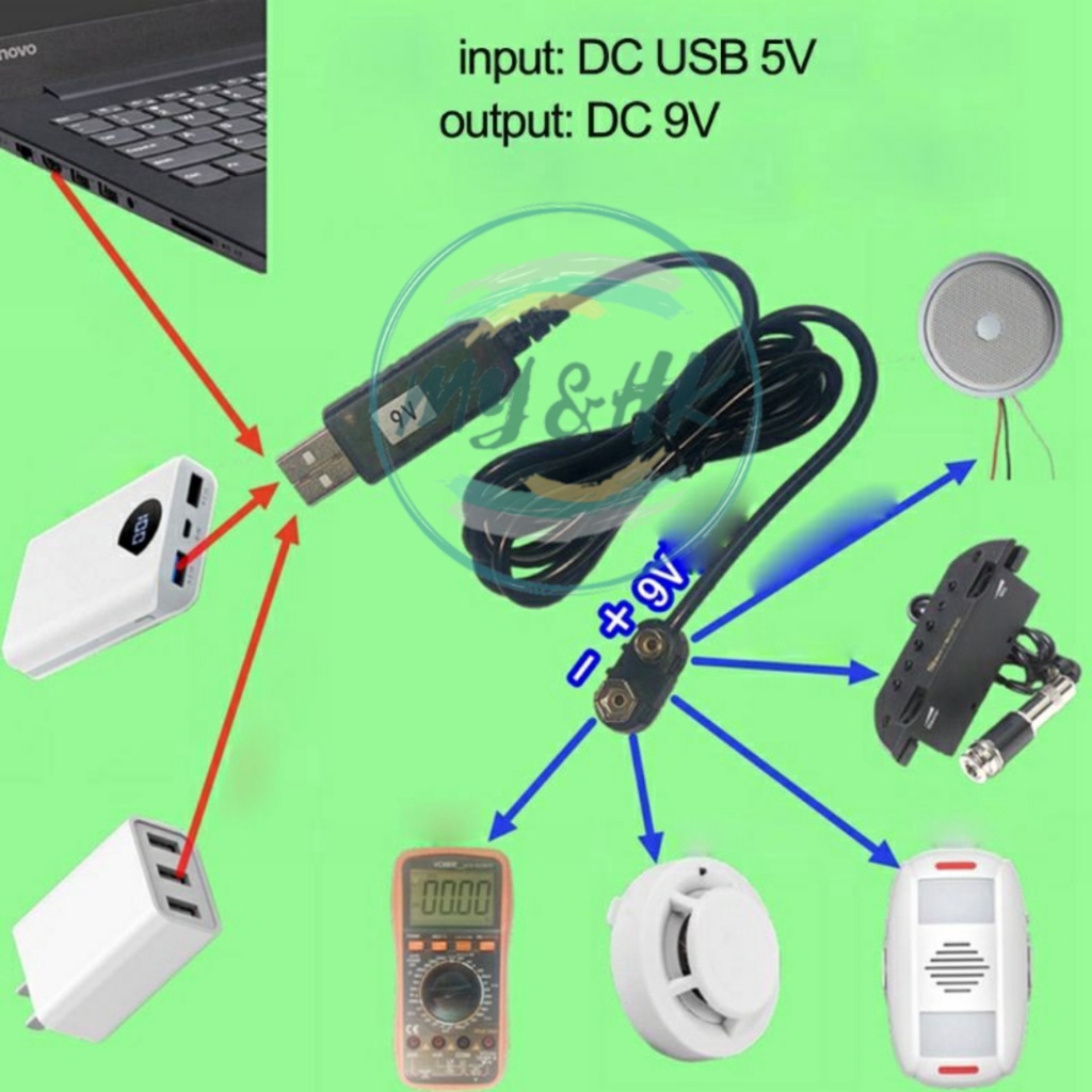 9 Volt Battery Eliminator USB Power Supply Cable (can for Smart Tag) Replace 9V Battery Voltage Converter 5V to 9V Save$