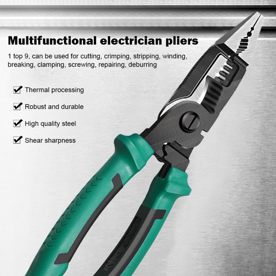 9 in 1 Multifunction Electrician Pliers Long Nose Pliers Combination Pliers Stripper/Crimper Pliers Diagonal Pliers