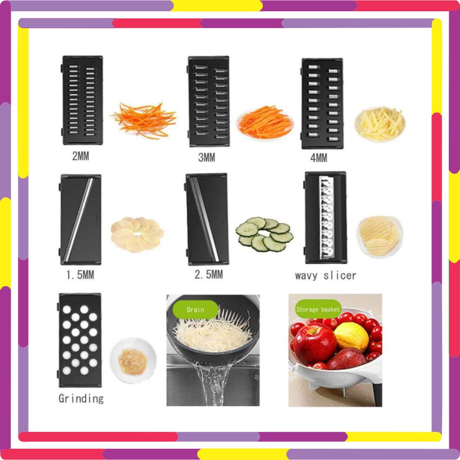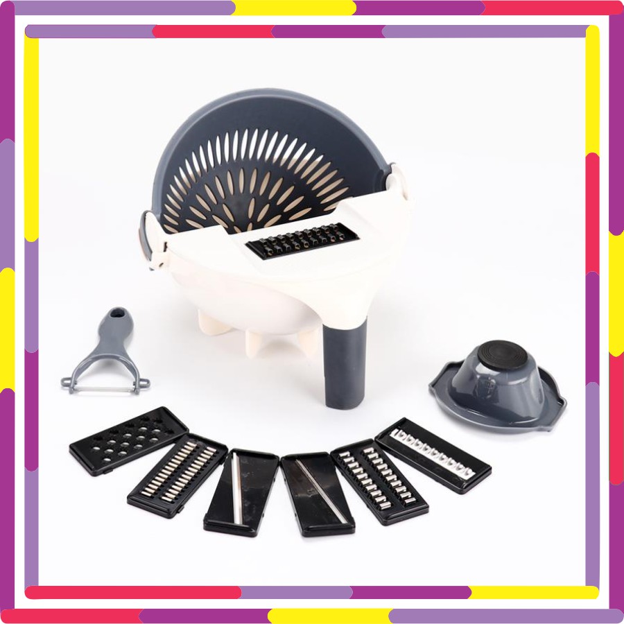 9 in 1 Multifunction Vegetable Cutter with Drain Basket Magic Rotate Vegetable Cutter Portable Slicer Chopper Grater Kit
