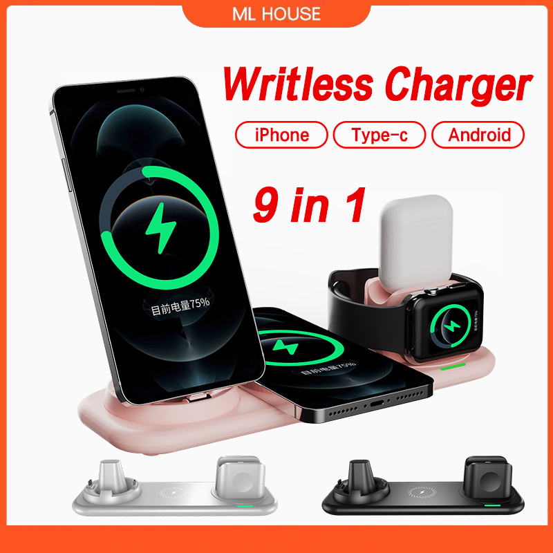 9 in 1 Wireless Charger Dock Station for iPhone 14/13 Pro /12/14Pro max Qi Fast Charging Watch 6 5 Air-pods Charger