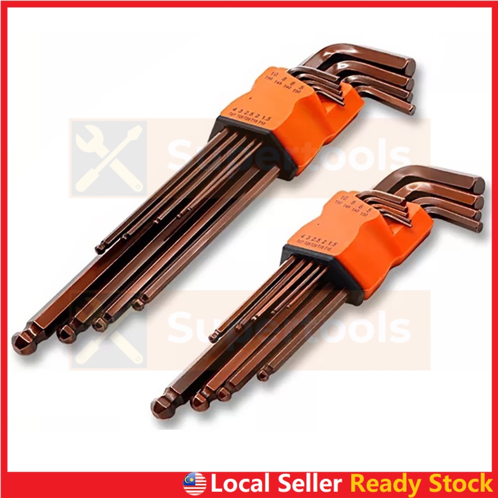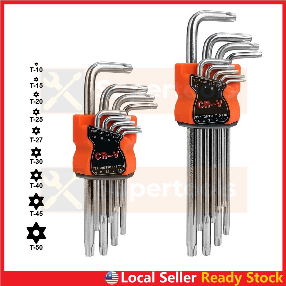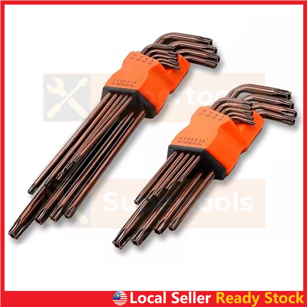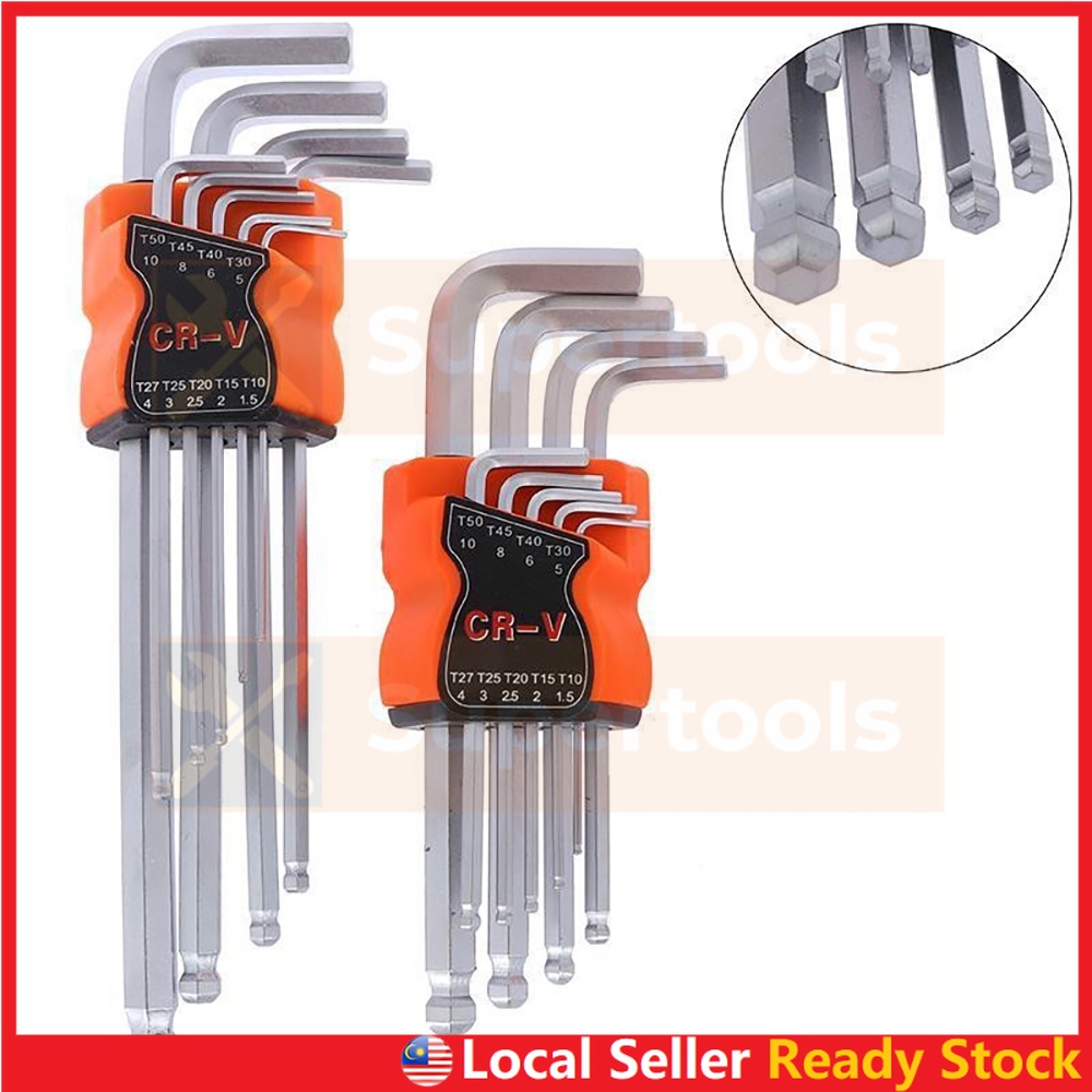 9 pcs Allen Key Wrench Set Ball Point Flat Head Hex Torx Star Extra Long CRV S2 Elenkey Elengki Screwdriver Spanner