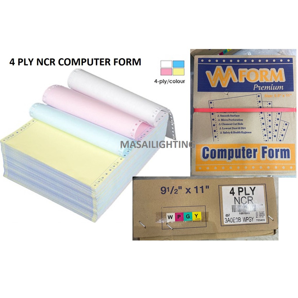 9.5'' X 11'' 4Ply WPYG NCR Computer Form / Computer Paper 270Fans Color (White/Pink/Yellow/Green)