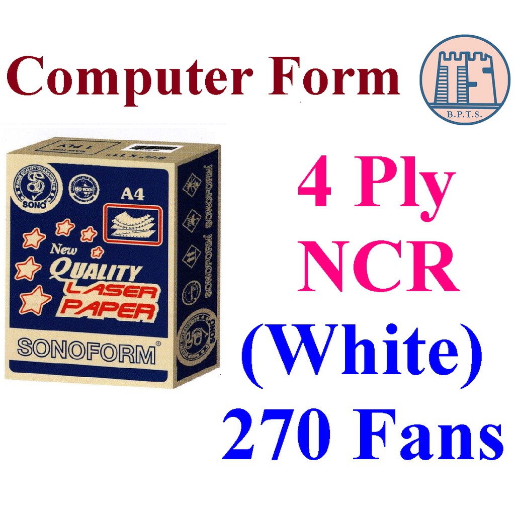 9.5 x 11 4Ply NCR (All White) Computer Form 9.5" X 11" Sonoform (270 Fans)