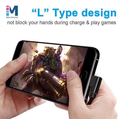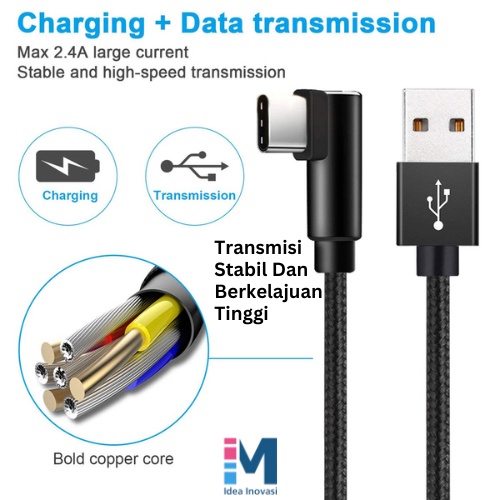 90 Degree L Shape Type C to USB Cable 2.4A Black Nylon Braided 1 Meter Fast Charging Quick Charge Data Cable