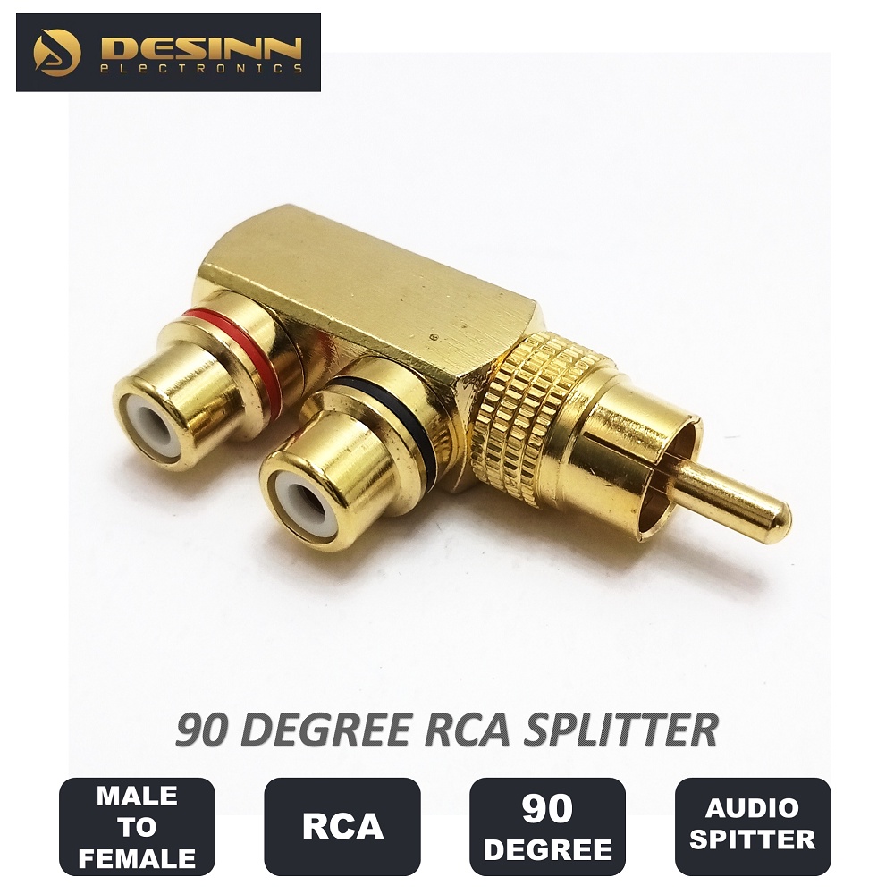 90 Degree Right Angle RCA Splitter 1 Male to 2 Female AV Audio Adapter Connector for amplifier speaker recorder camera