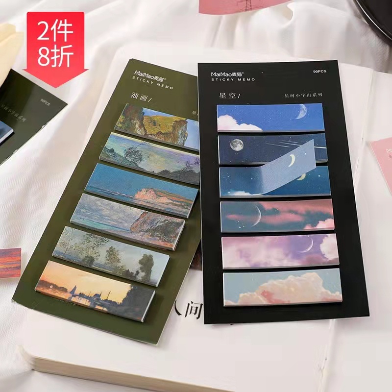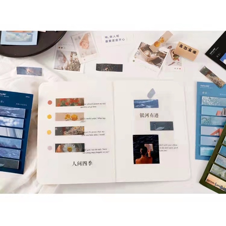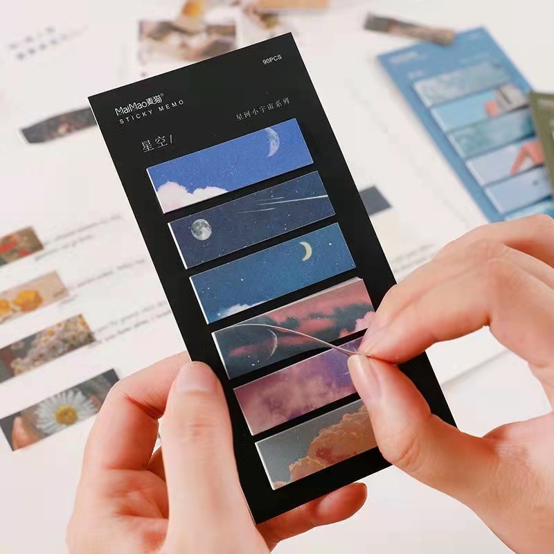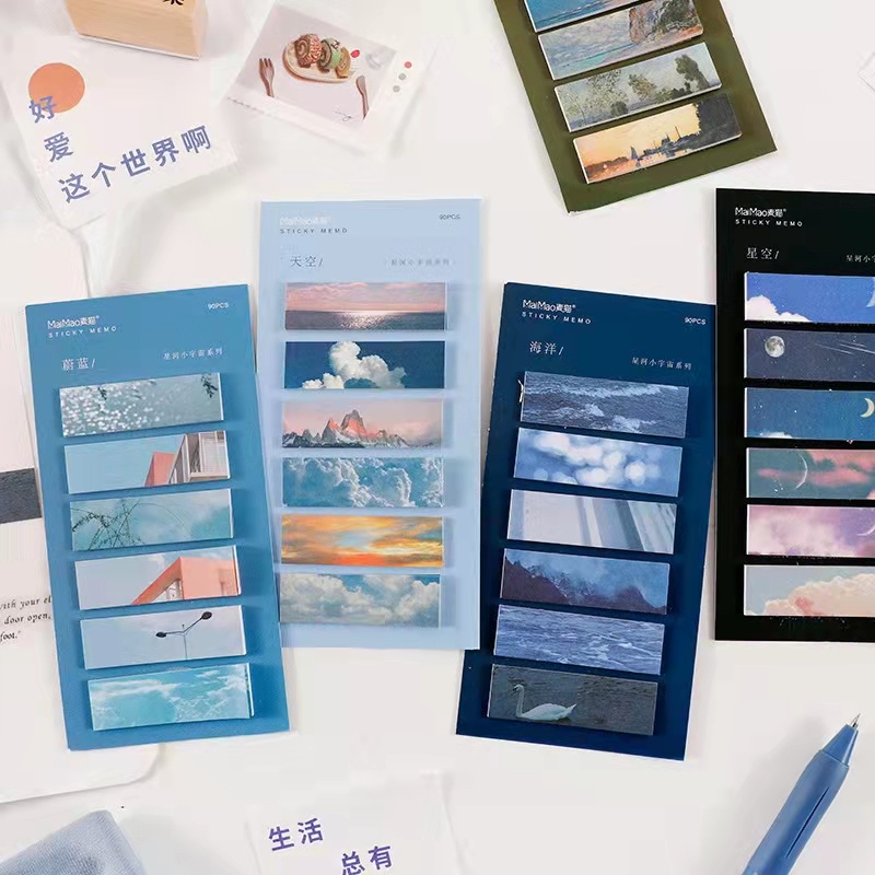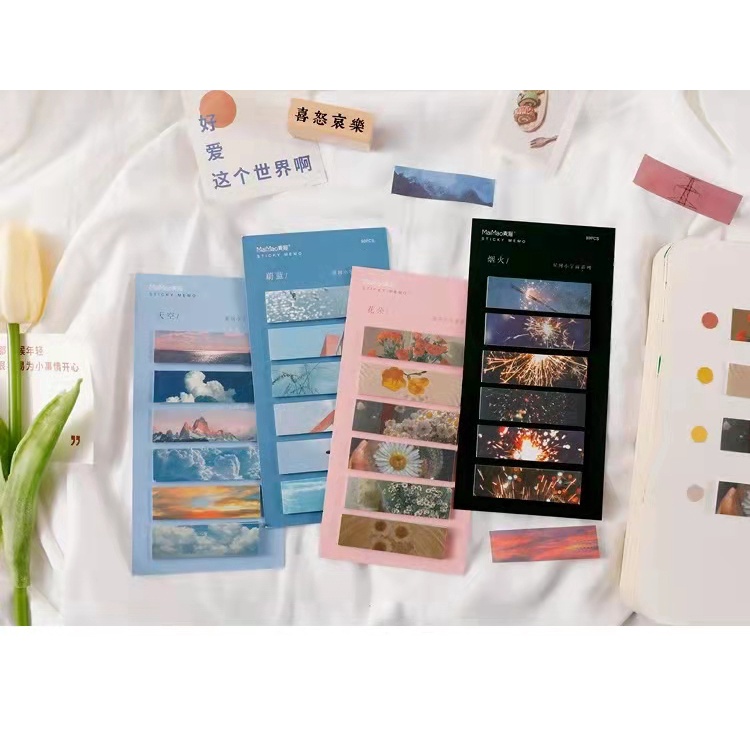 90 Pcs Sky Landscape Land Scenery Flower Aesthetic Memo Note Sticky Pad Stripes