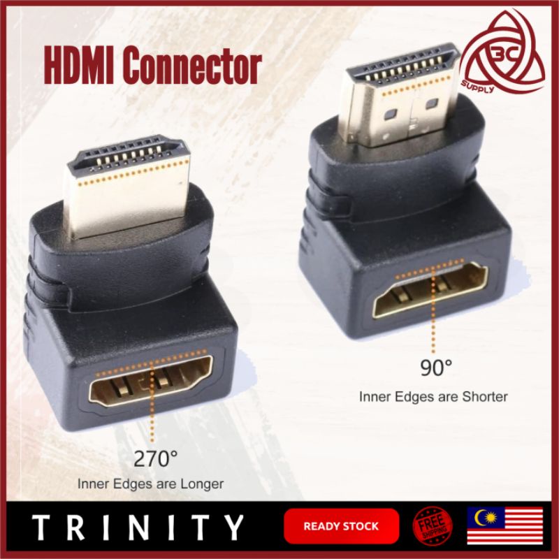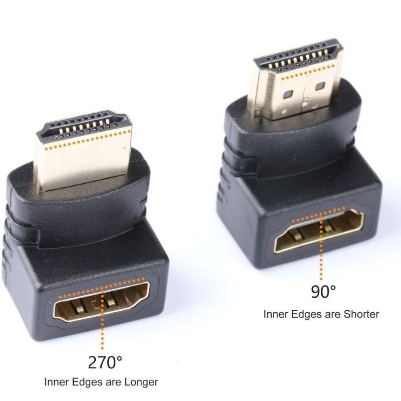 90 degree / 270 degree HD Video L shaped Connector Joint Adapter Cable Male to Female Converter x 1pc