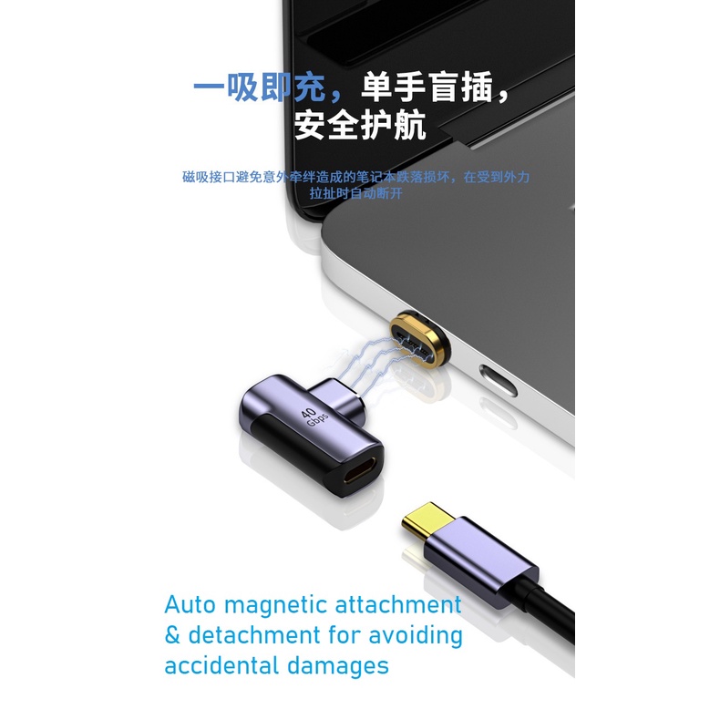 90 degree L shape elbow Magnetic 2 in 1 Type-C To USB-C 4K 8K 100W Fast charging USB4 Thunderbolt TB 3 4 40Gbps Adapter