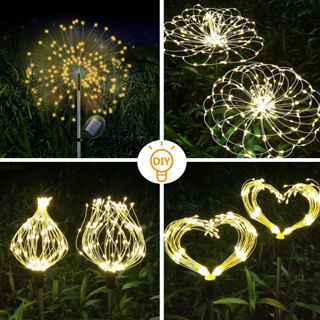 90LED/120LED/150LED 2 Modes Outdoor Solar Fireworks Light Solar Ground Plug Fireworks Light Pelita RAYA Lampu Solar Garden Light