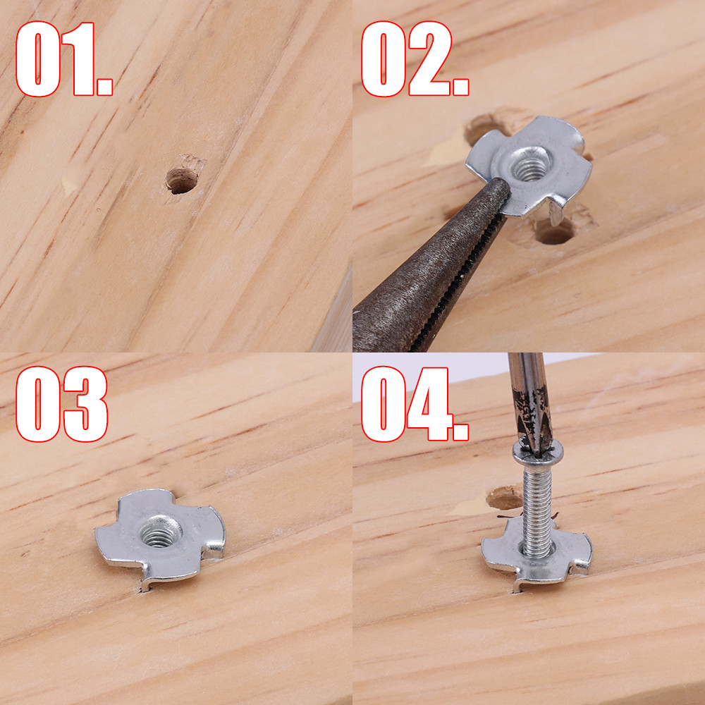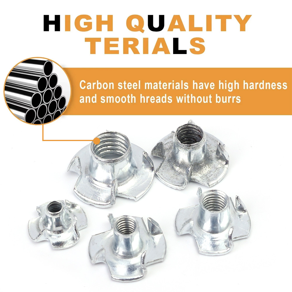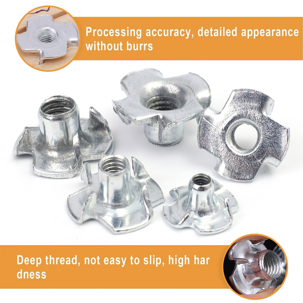 90Pcs/Box Carbon Steel Four Claws Nuts - Blind Inserts Nut - M3 M4 M5 M6 M8 T-nut Sets - Furniture Repairing Accessories - Anti-rust, High Quality - Four-Point Impact Nuts