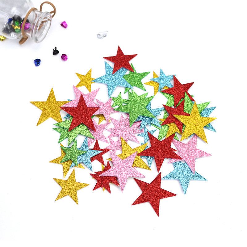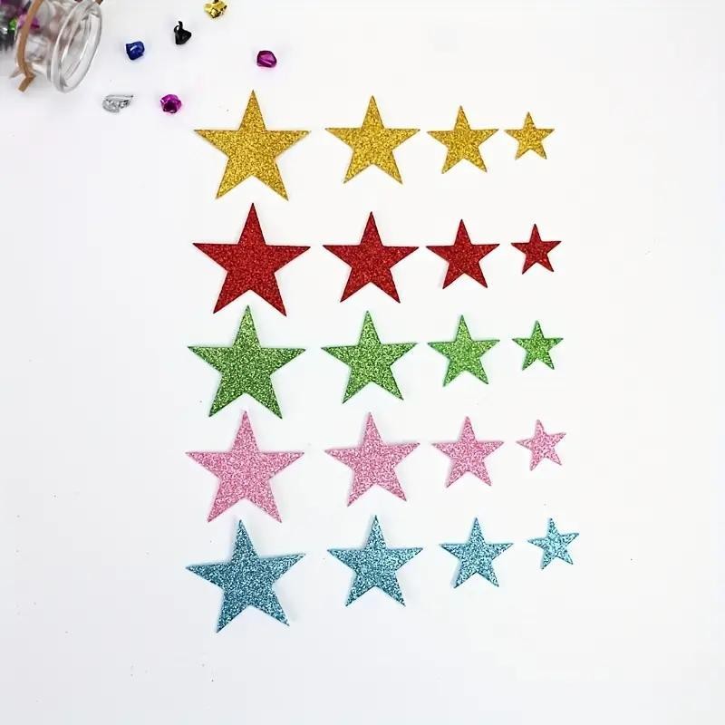 90pcs Christmas Star Stickers Glitter Foam Stickers Crafts Decals Star Foam Stickers Scrapbooking Greeting Cards Home Christmas New Year Birthday Party Graduation Decoration Decals