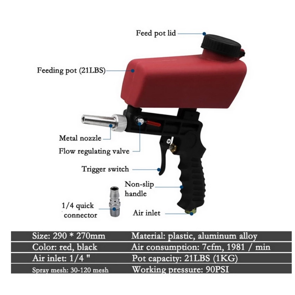 90psi Portable Gravity Pneumatic Sandblaster Gun Lightweight Aluminium Handheld Blasting Machine Gravity Adjustable Tool