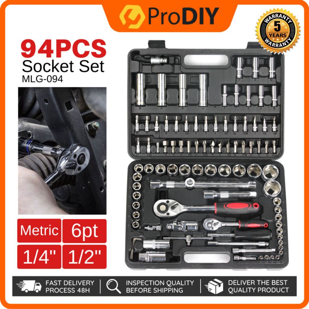 94pcs Drive Socket Wrench Racthet Set Vehicle Car Emergency Kit Car Repair Wrench Tool Kit Box