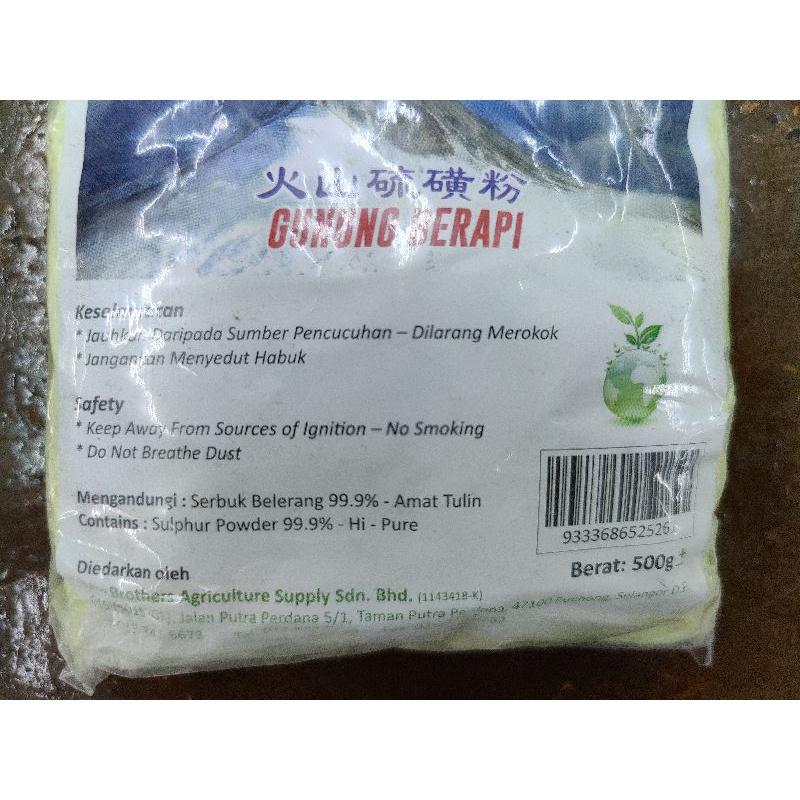 99.9% GUNUNG BERAPI SERBUK BELERANG TULEN , PURE SULPHUR POWDER ( USED FOR SNAKE REPELLENT ) 500GM PER PACK
