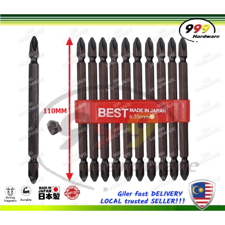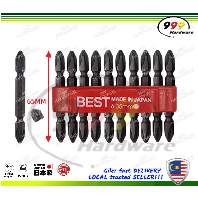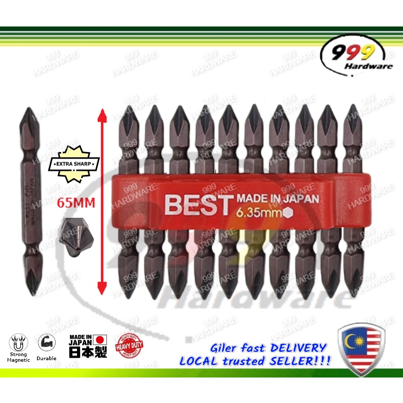 999 BEST MATA SKRU [10PC] MAGNETIC ANTI-SLIP SCREWDRIVER BIT / STANDARD PHILIPS BIT / (+) CROSS HEAD (MADE IN JAPAN)