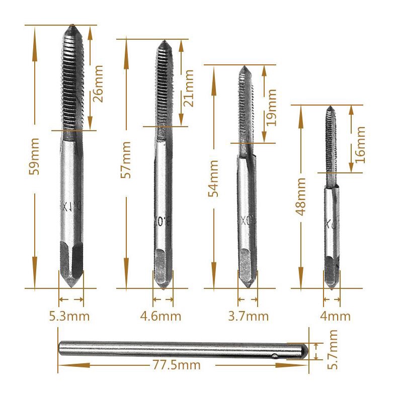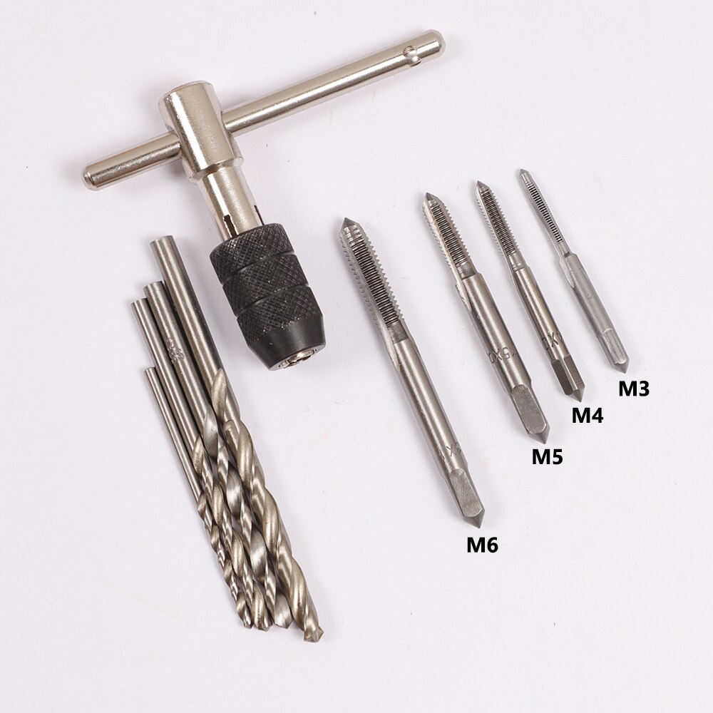 9Pcs/Set T-type Wrench Drill Set Hand Tapping Tools M3/M4/M5/M6 Machine Screw Thread Tap Twist Bit Tap Holder Set DIY Tool