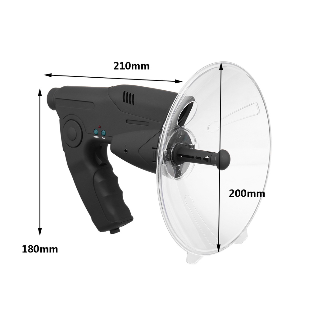 9V 8X 100M Focusing Telescope Parabolic Dish Directional Microphone Birdwatching Telescope Outdoor Bird Listening Telescope Monocular Black