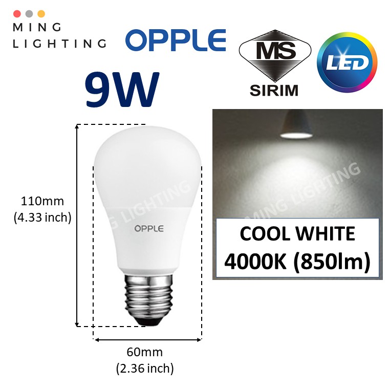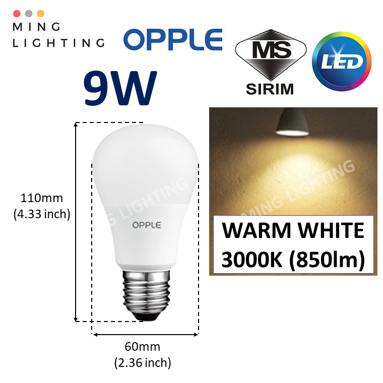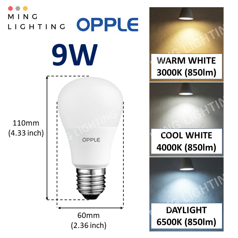 9W OPPLE LED A-BULB E27 WARM WHITE 3000K COOL WHITE 4000K DAYLIGHT 6500K