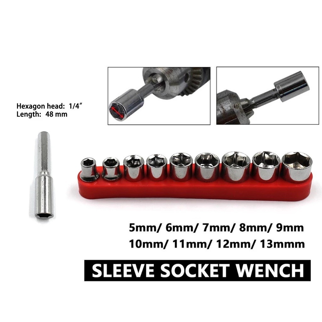 9pcs 1/4 Inch Drive Hex Bit Socket Wrench Set Sleeve Wrench Set Wrench Adapter 5/6/7/8/9/10/11/12/13mm Hand Tools (M)