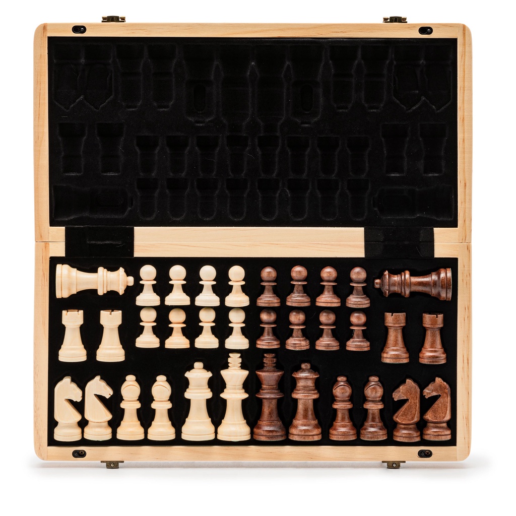 A&A 15" Magnetic Wooden Chess Set /Folding Board / 3" King Height Staunton Chess Pieces /2 Extra Queen /Board Games Chess Sets for Adults and Kids