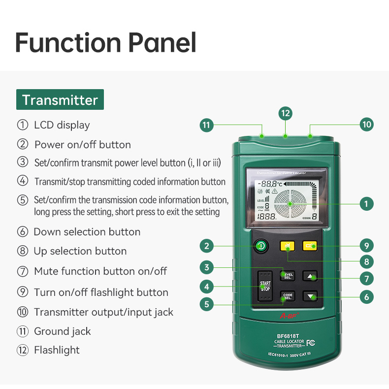 A-BF BF6818 Cable Line Detector 12~400V Metal Tube Optical Detector Underground Troubleshooting Pipeline Wire Finder MS6818