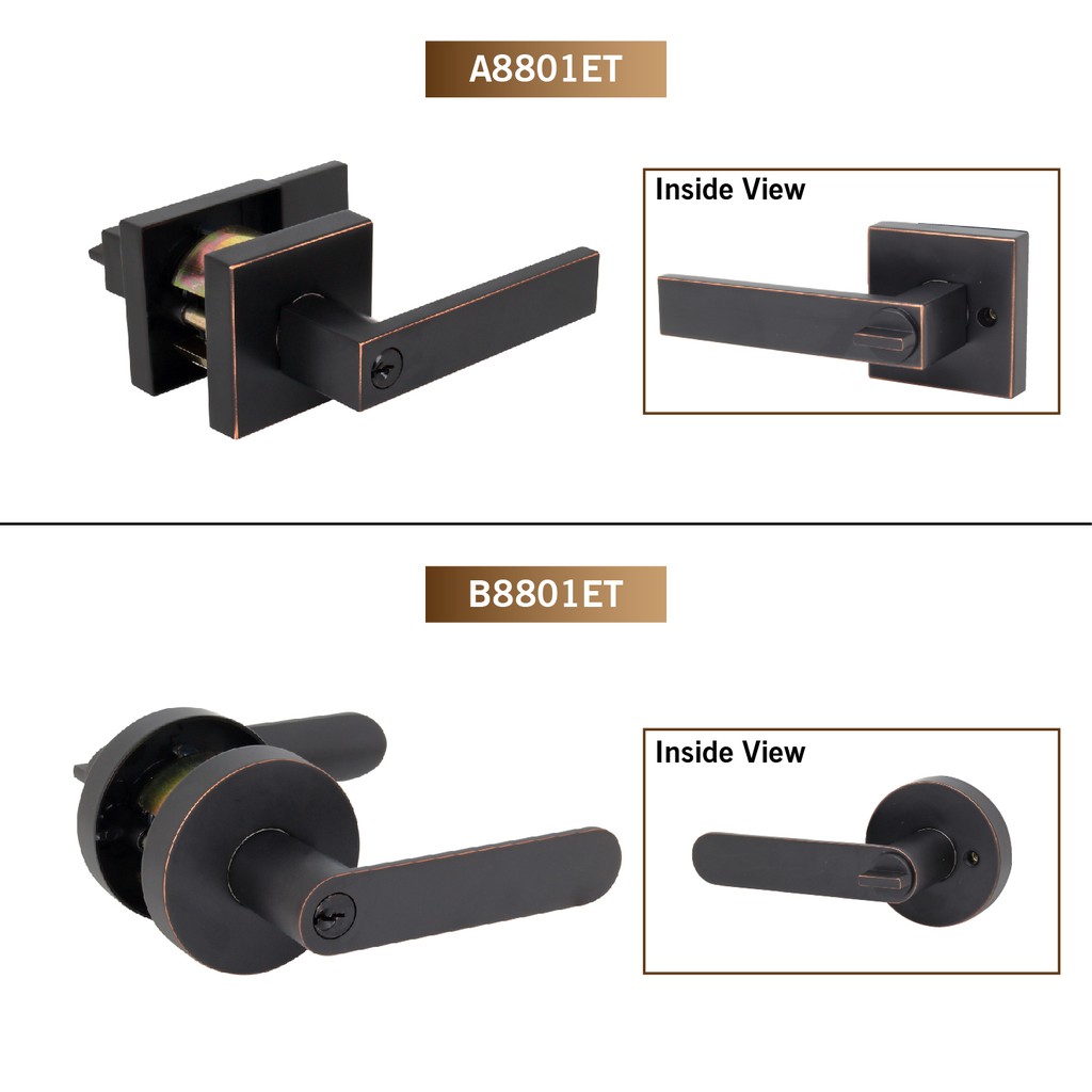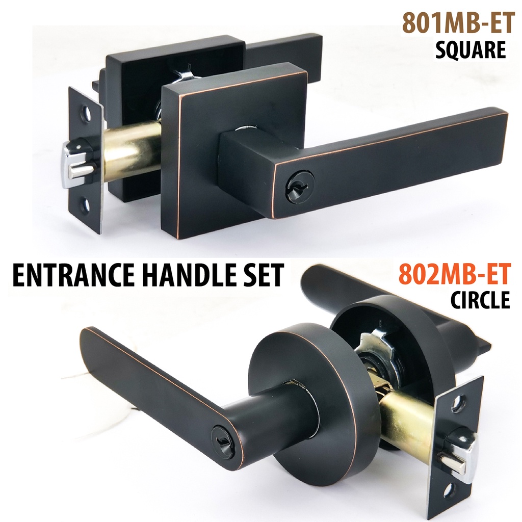 A-CLASS KEYED DOOR HANDLE LOCK SET/ 6300US10B PREMIUM BLACK LEVERSET/ 801MB-ET SQUARE/802MB-ET CIRCLE EMPIRE BLACK SET