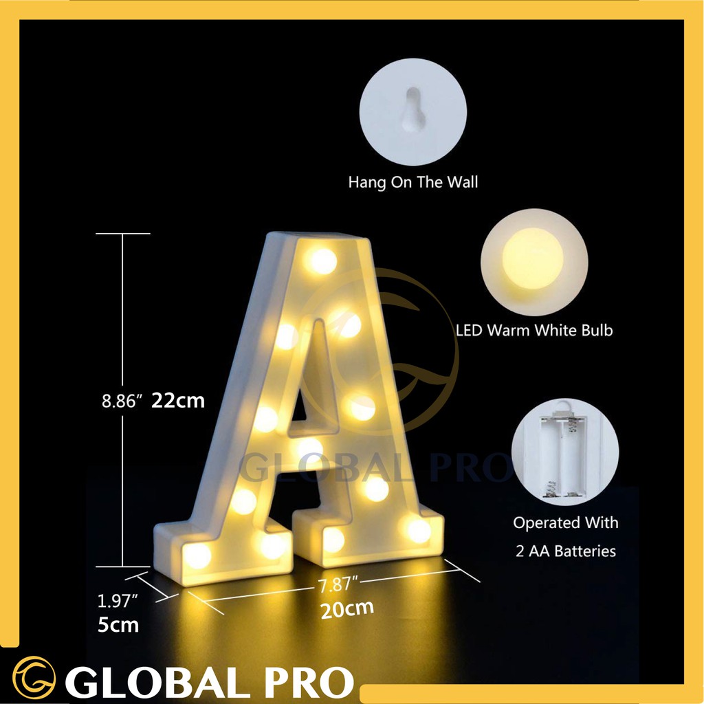 A-L LED Night LARGE Lamp English Letter Alphabet Light For Wedding Birthday Party Lampu LED Abjad