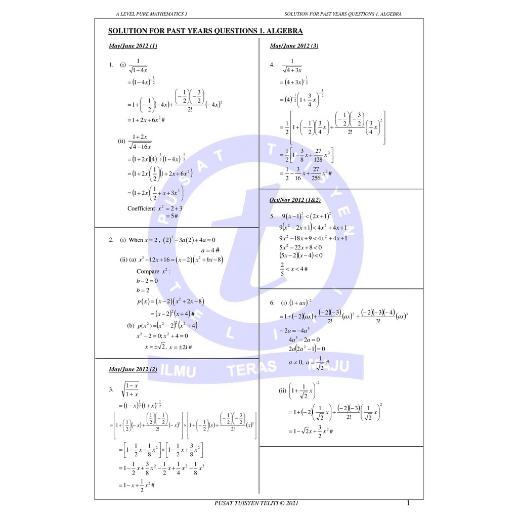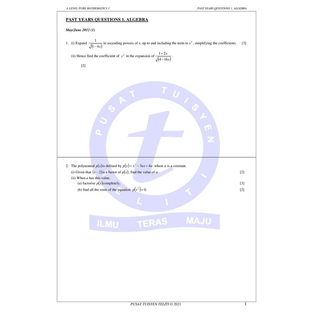 A LEVEL PURE MATHS 3 TOPICAL PAST YEAR'S QUESTIONS WITH SOLUTIONS