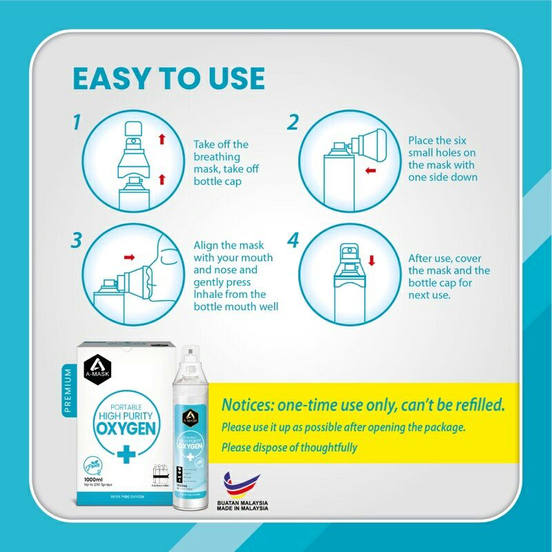 A-MASK Oxygen Portable Spray Bottle Inhaler O2 Supply
