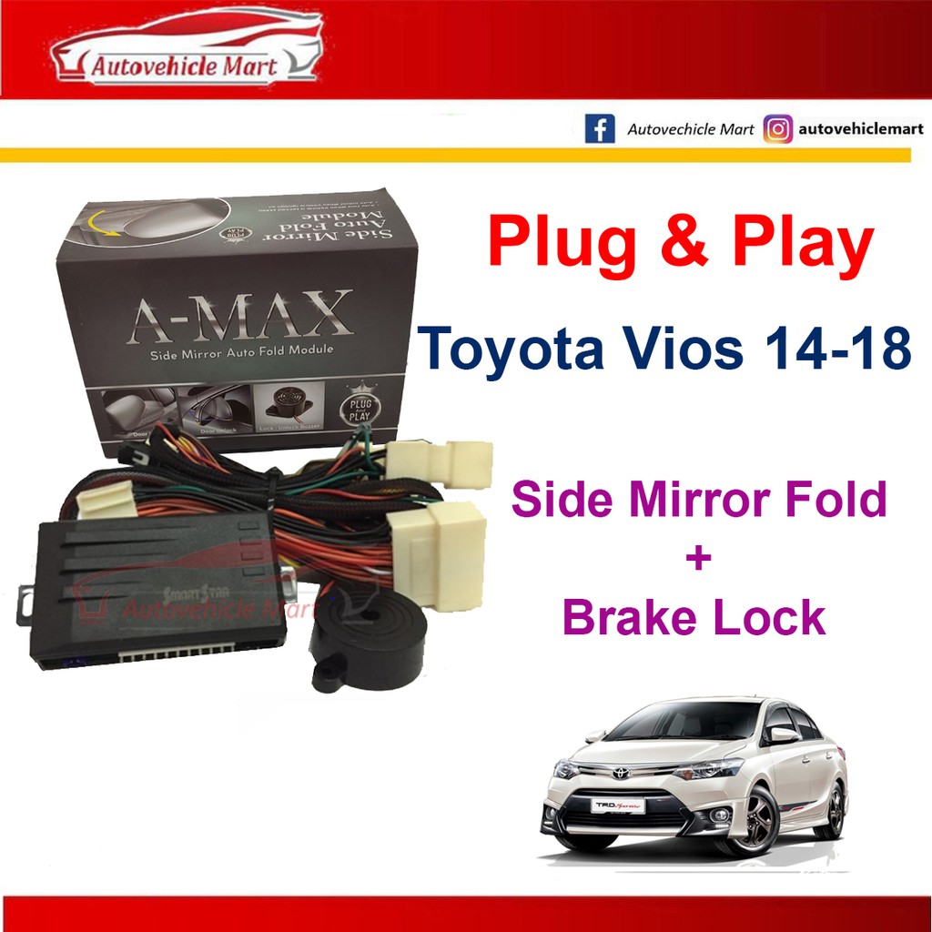 A-MAX Toyota Vios 14-18 Side Mirror Auto Fold System and Brake Lock 2 IN 1 (MIRROR FOLD + BUZZER)