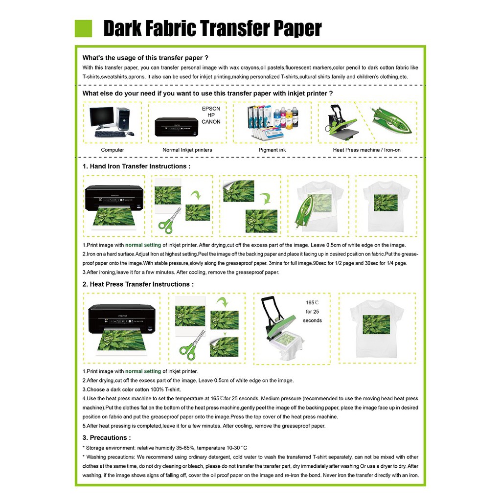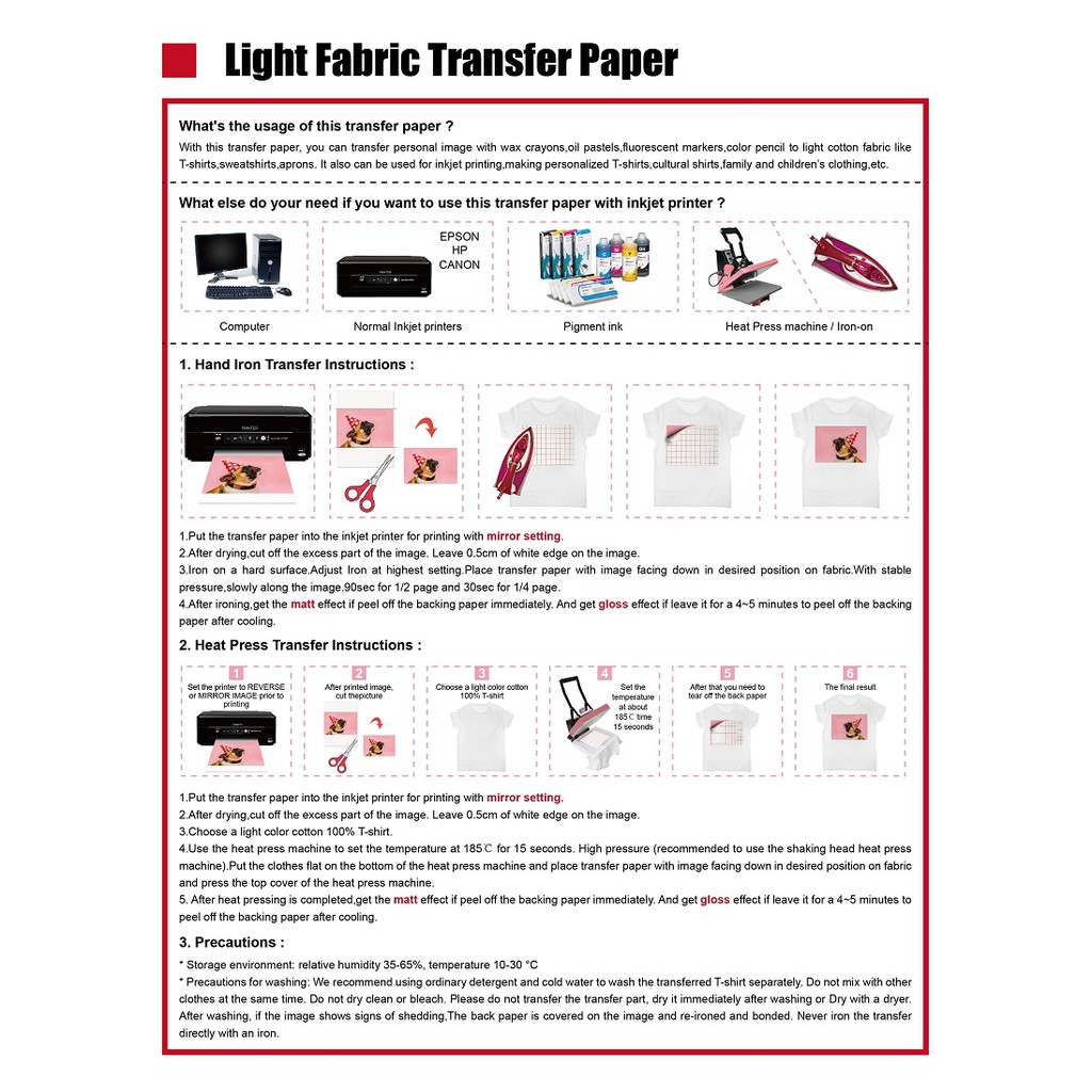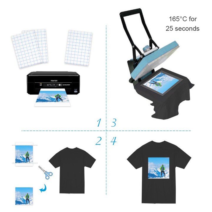 A-SUB A4 Inkjet Printable T-Shirt Heat Transfer Paper for Light/Dark Fabric Thermal Transfer