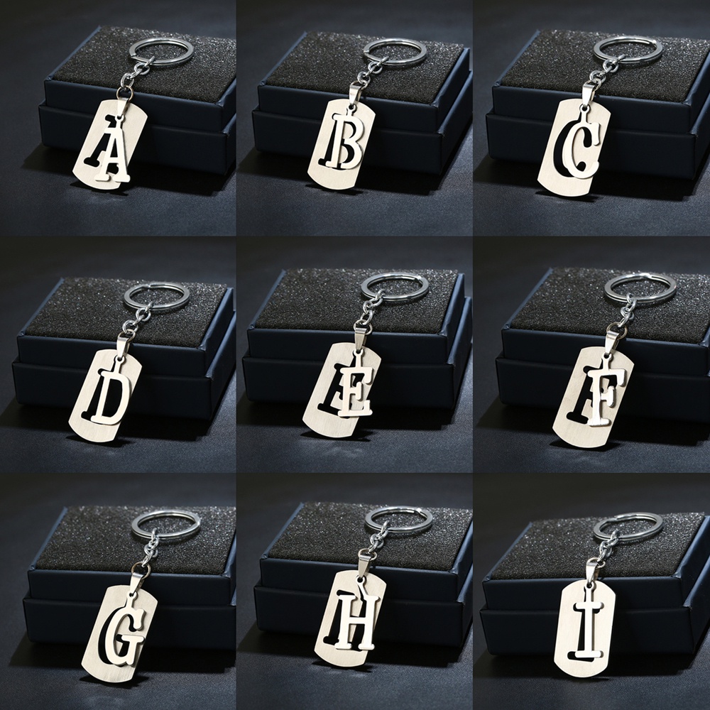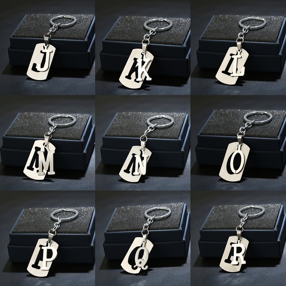 A-Z Letters Key Chain For Name Silver Color Steel Keychain Charms Women Men Car Key Ring Simple Key Holder Accessories