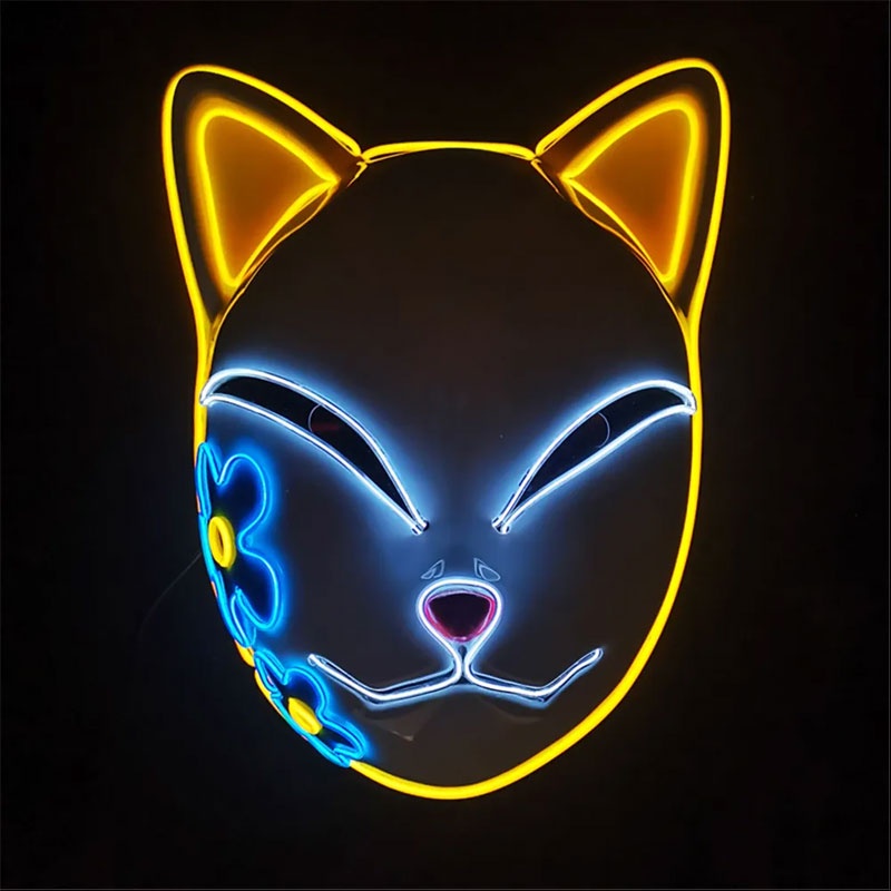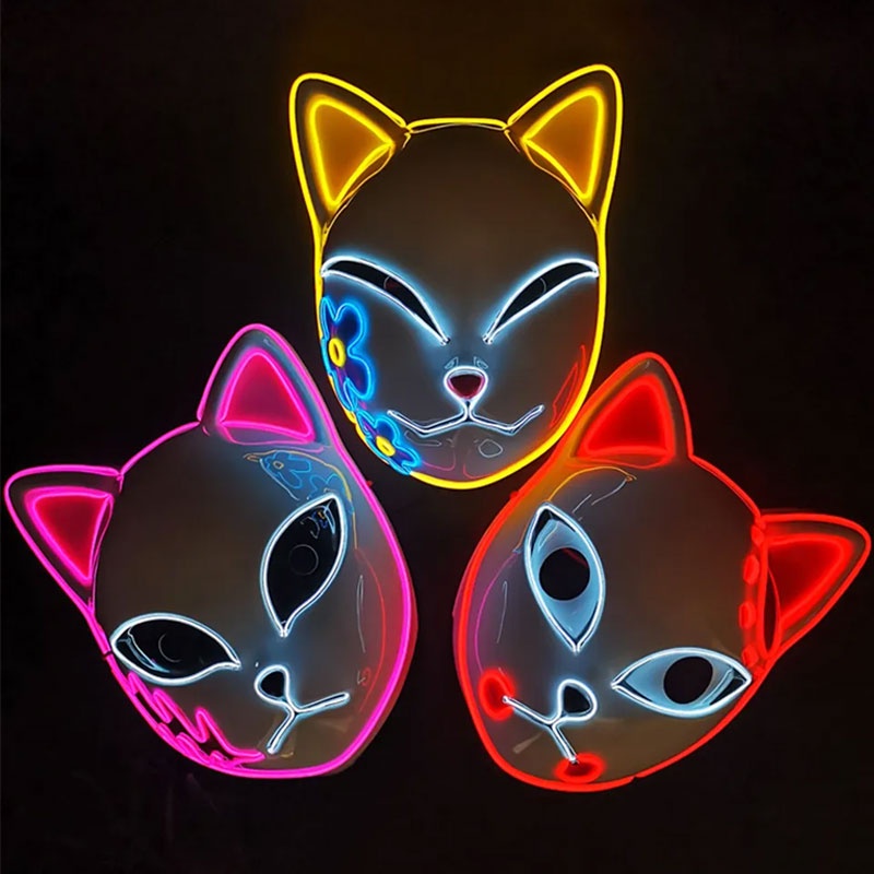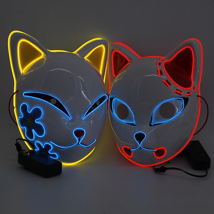 A0326 Demon Slayer Luminous Mask LED Anime COS Props Tanjirou Kutu Masao Half-Face Fox Luminous Mask