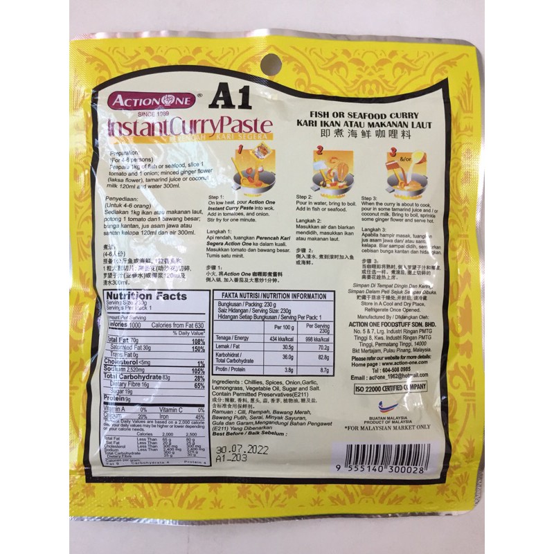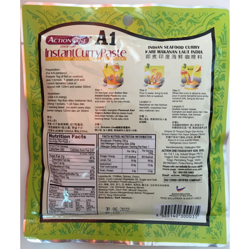 A1 ACTION ONE INSTANT CURRY PASTE PERENCAH KARI SEGERA 230g