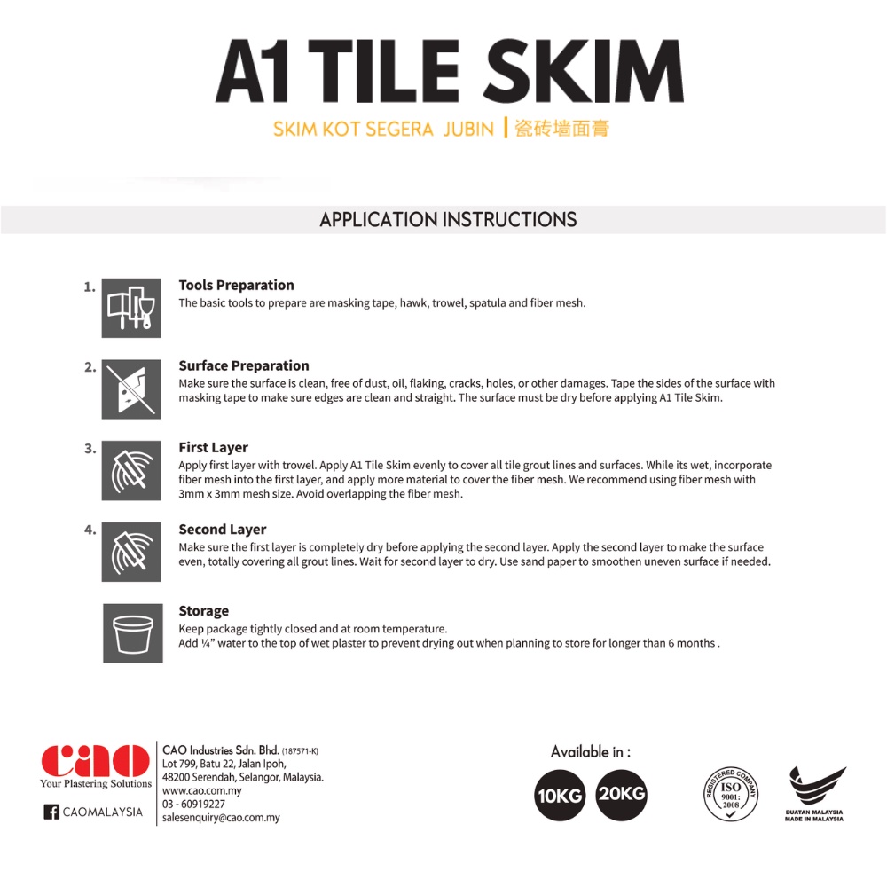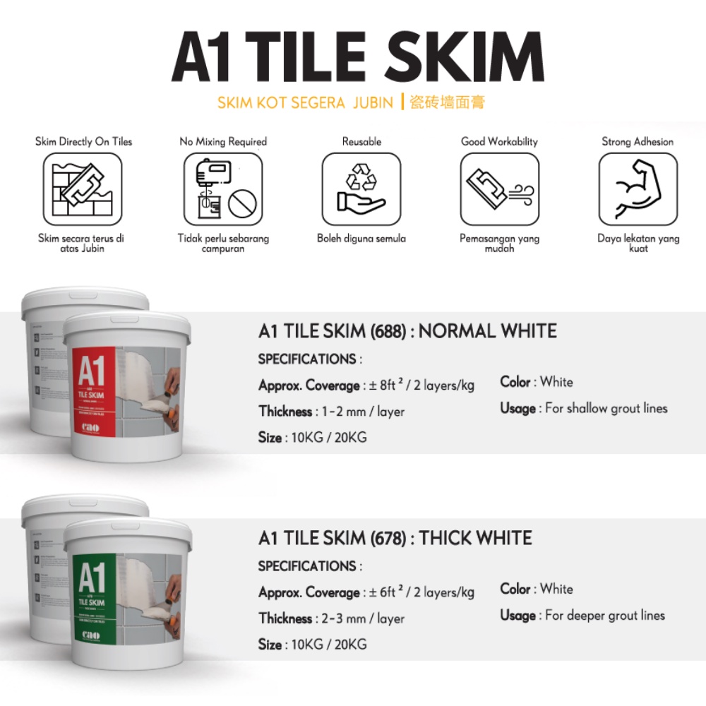 A1 Tile Skim 678 10kg - Plaster on Existing Tiles