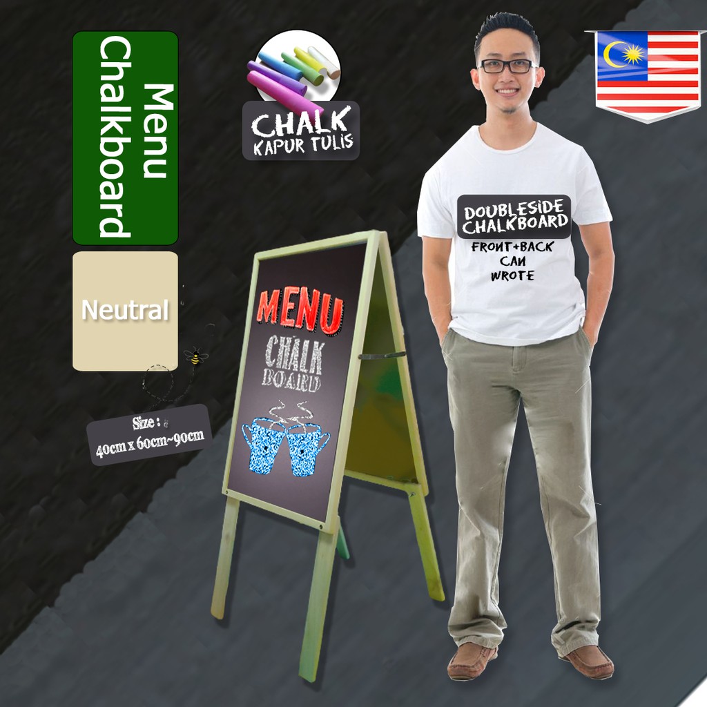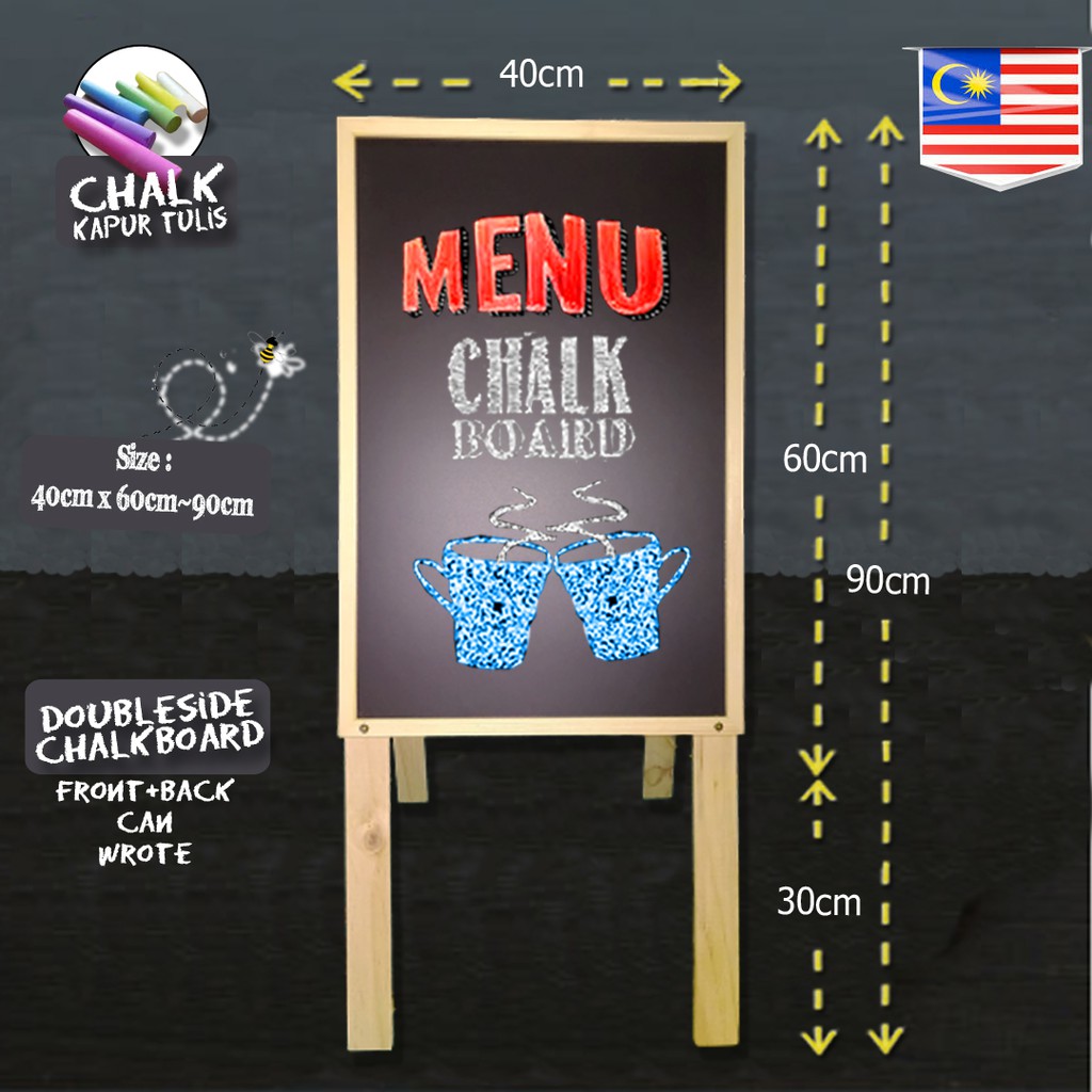 A2 (40cm*60cm~90cm) Chalkboard Blackboard Papan Hitam SENIOR BIG MENU Board (Frame : Neutral Wood)