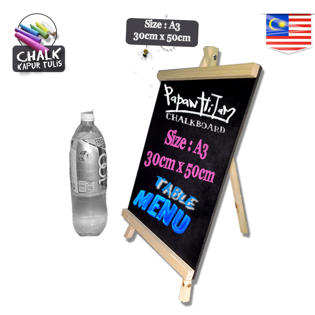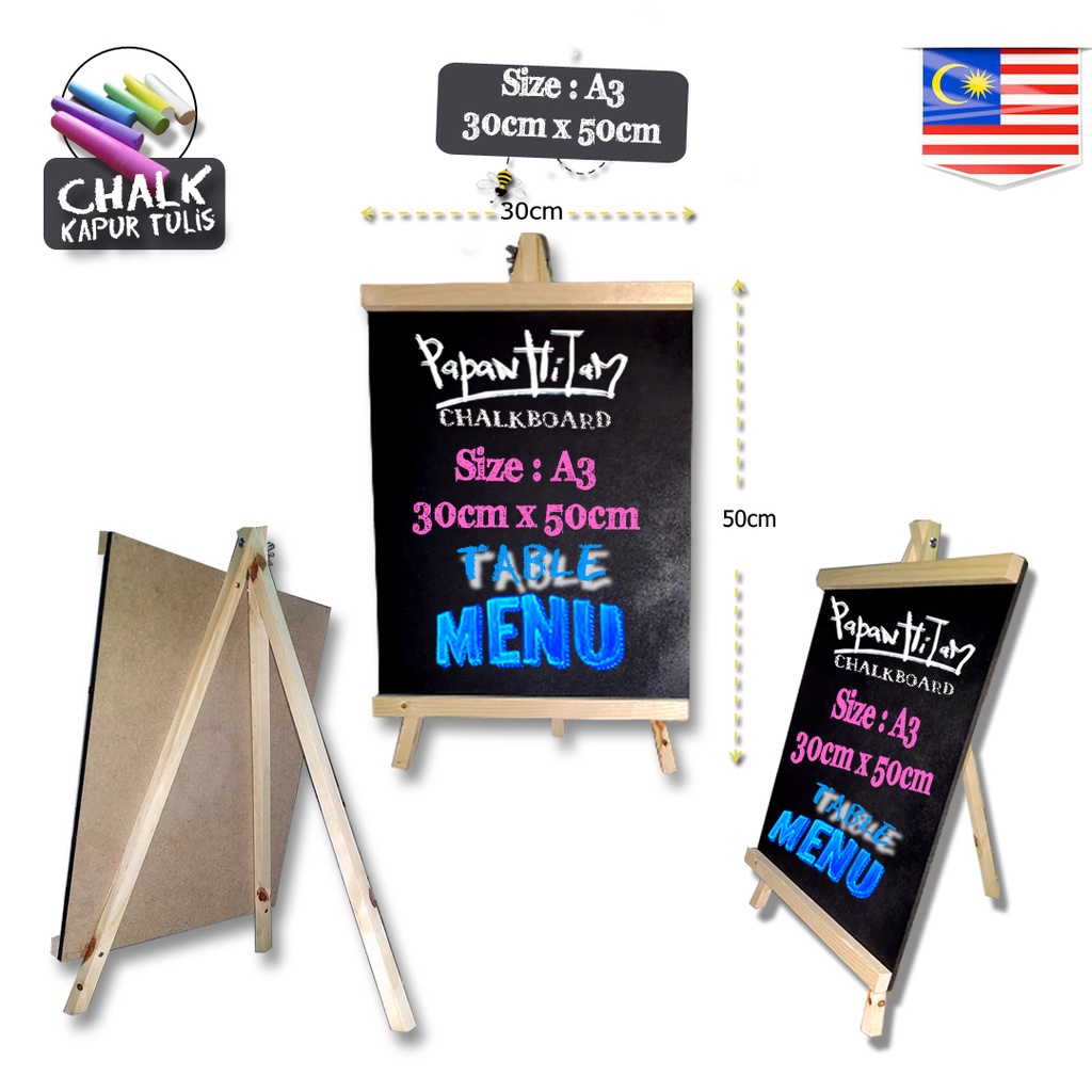 A3 (50cm*30cm) Table Menu Board Wood ChalkBoard Blackboard Papan Hitam Cafe Bistro (Frame : Neutral Wood)