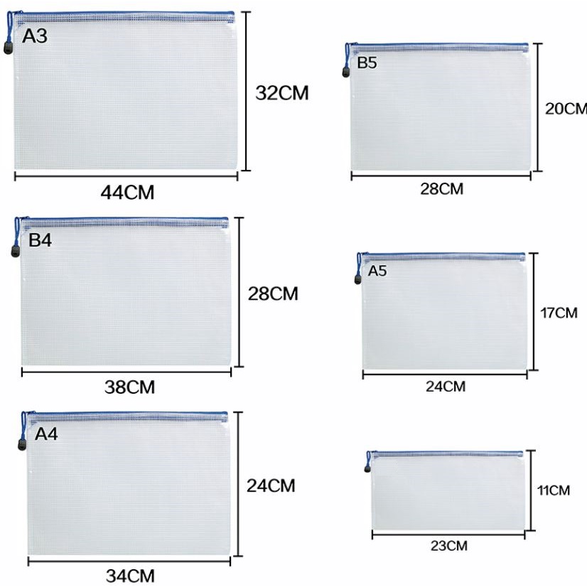 A3/A4/A5/B4/B5/Pencil Case Size Mesh Grid Zipper File Bag Waterproof Document File Folder Bag