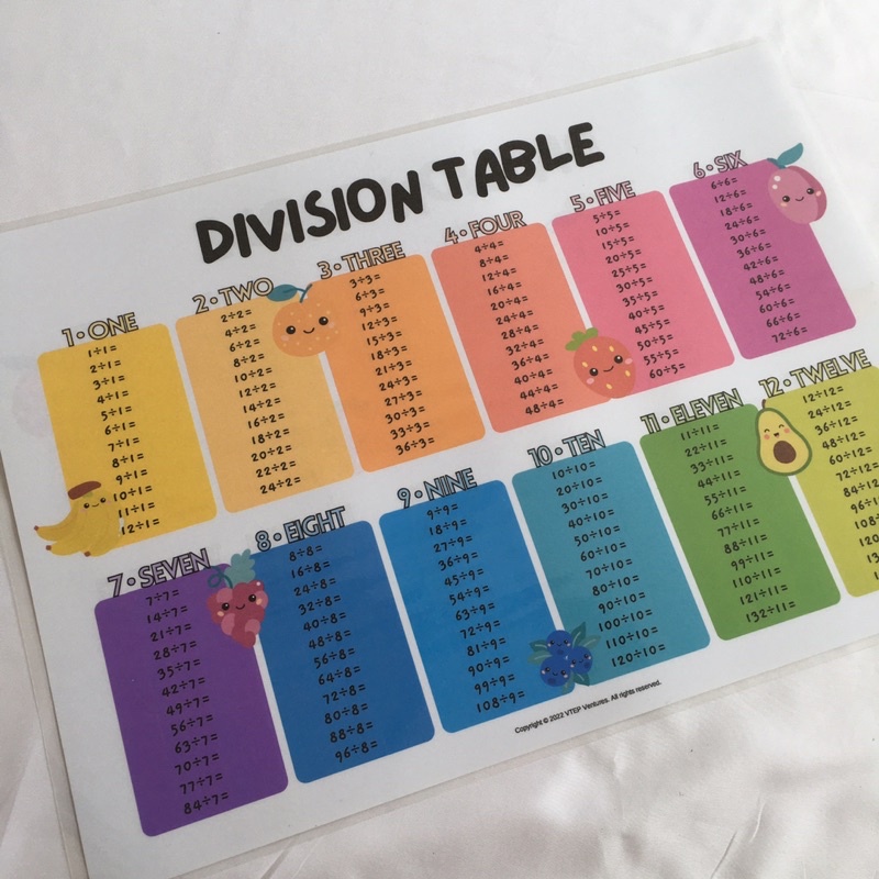 A3/A4 Division Table (2-in-1) [Division Poster,Poster Bahagi, Poster Matematik,Bijak Matematik,Bijak Bahagi]