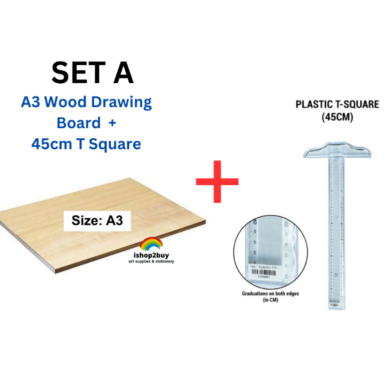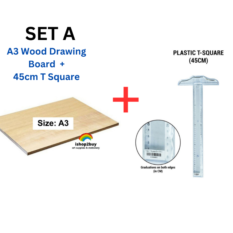 A3 Drawing Board Waterproof Bag T Ruler 45cm A3 Wood Board T Square Sekolah Teknik Kejuruteraan Vokasional