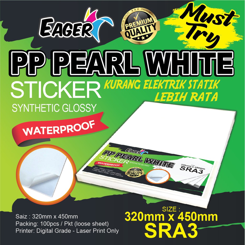 A3++ PP Pearl White Sticker / Glossy / Sticker Kalis Air / Label Sticker / Frozen Sticker / Laser Printer Sticker