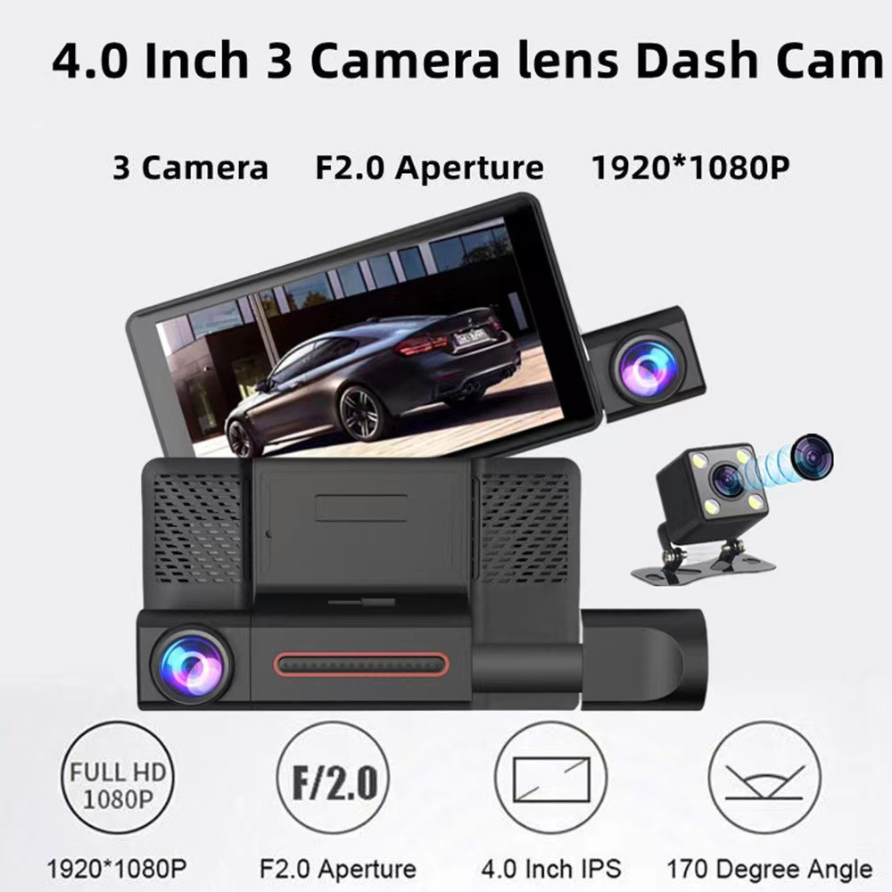 A33 3-lens Dash Cam 1080P High-definition 4-inch Screen Car DVR 24-hour Parking Monitoring DASHCAM