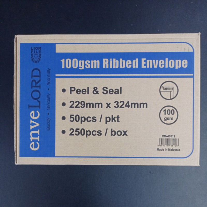 A4 100GSM RIBBED BROWN ENVELOPE 250's