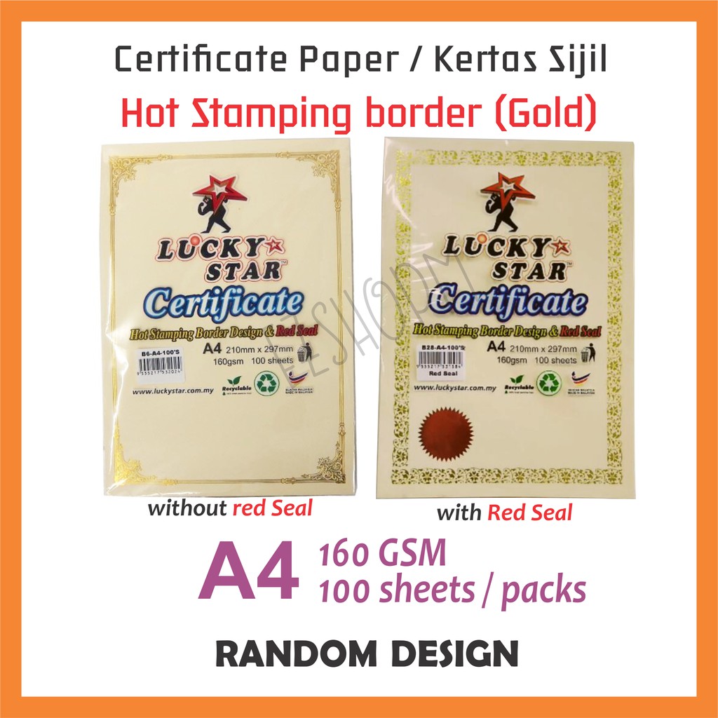 A4 Certificate paper / Kertas Sijil (hot stamping gold border) 100's/pack