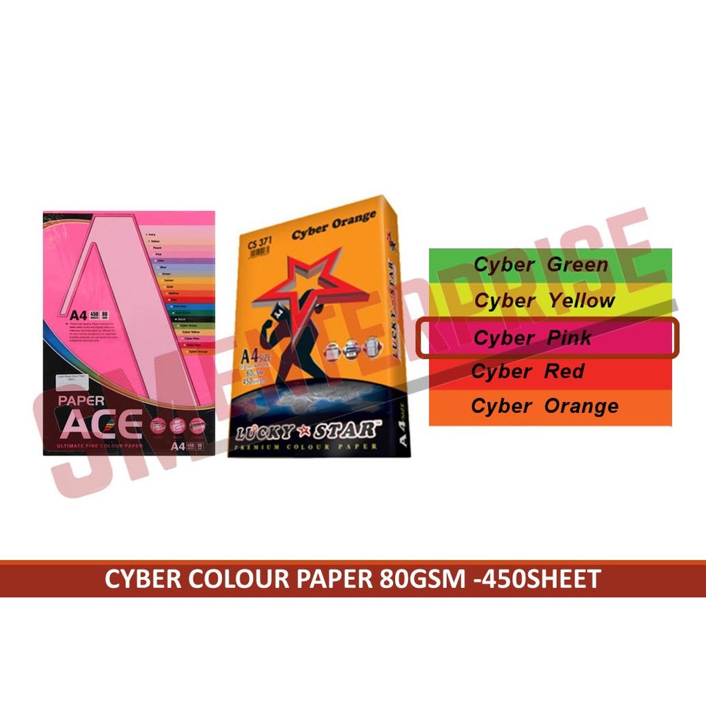 A4 Cyber Colour Paper 80gsm - 450sheet (Cyber Green / Yellow / Pink/ Red / Orange)