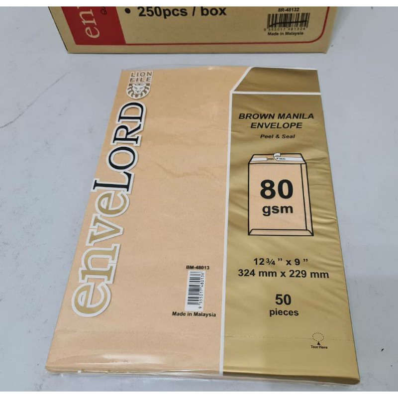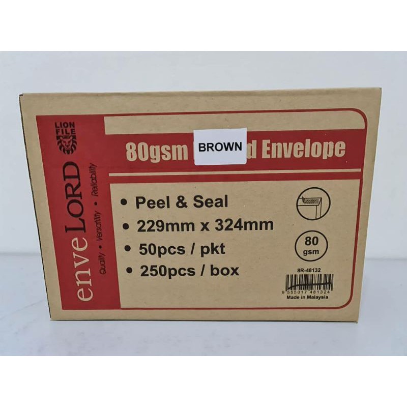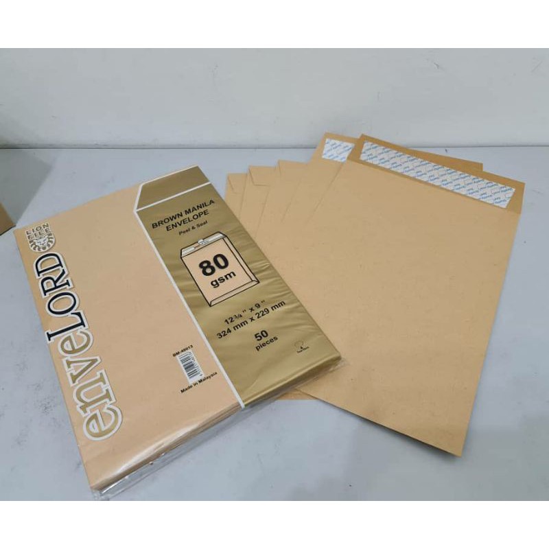 A4 Envelope Brown 9"x12.75" (229mmX324mm) 80gsm Peal & Seal (250pcs/box)