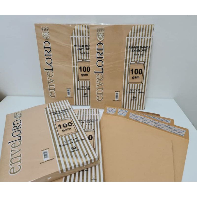 A4 Envelope Ribbed Manila 9"X 12.75" (229mmX324mm) Peal & Seal (50pcs/pkt)
